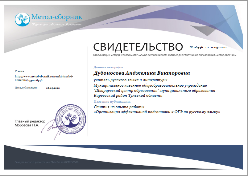 Май, 2020г . "Организация эффективной подготовки к ОГЭ ро русскому языку"
