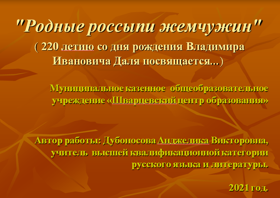 ( 220 - летию со дня рождения Владимира Ивановича Даля посвящается...)